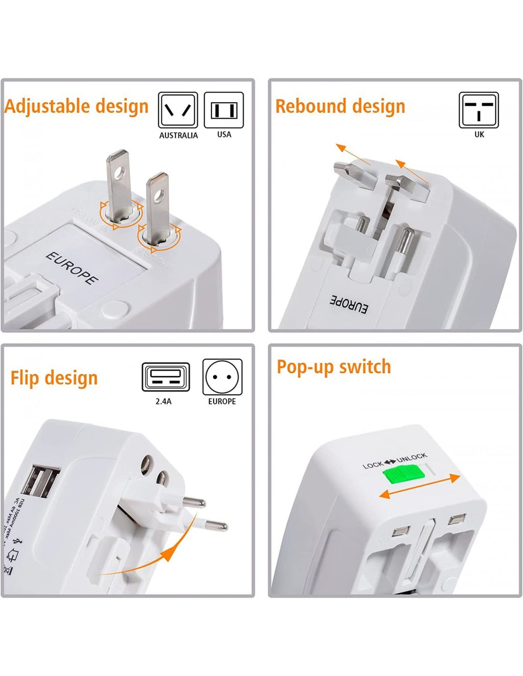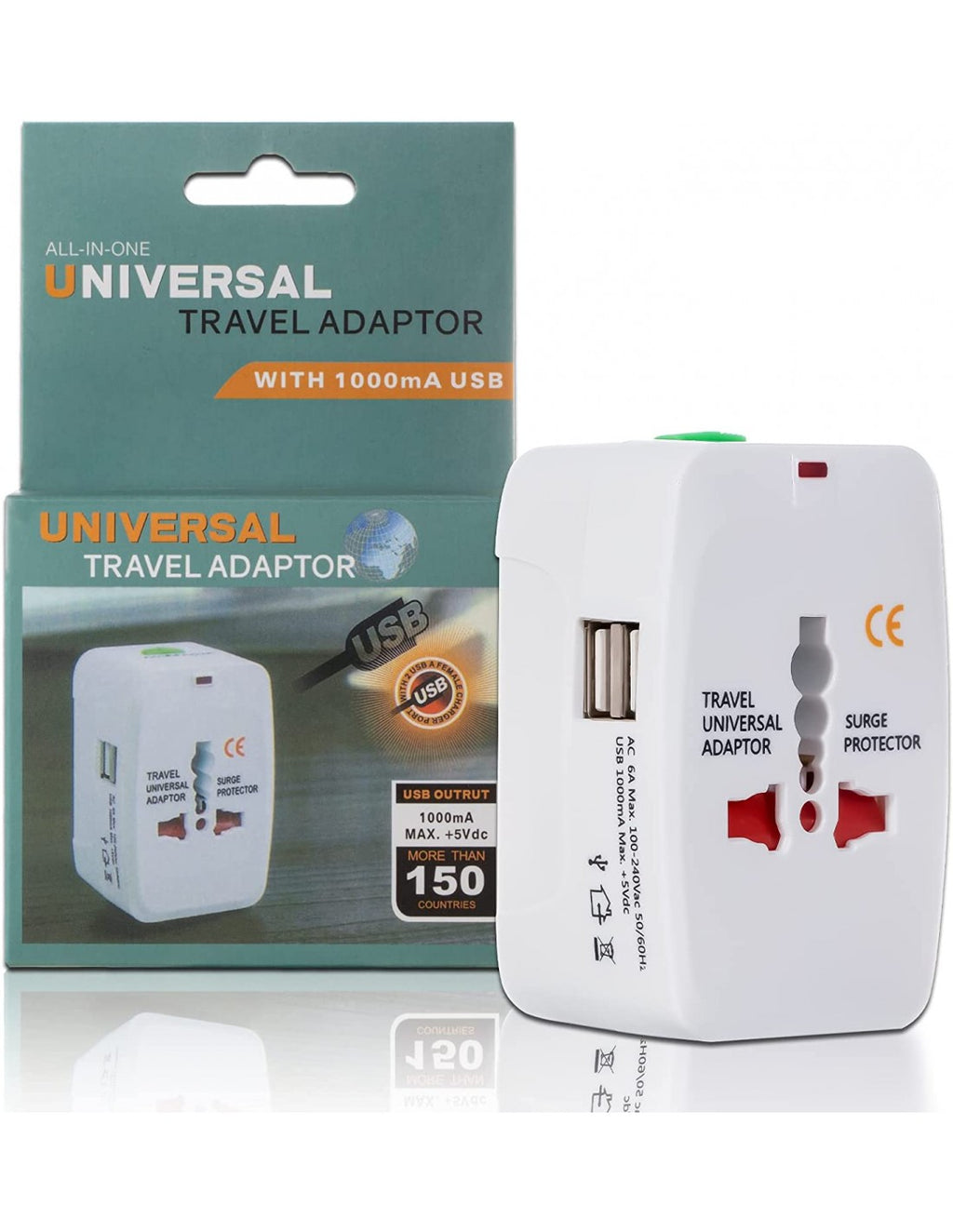 Adaptador Universal de Viagem com Porta USBViaje sem preocupações com o Adaptador Universal de Viagem, compatível com mais de 150 países. Equipado com uma porta USB integrada, permite carregar os seus dispositivos de forma prática e segura em qualquer lugar do mundo.Vantagens do ProdutoCompatibilidade Global: Funciona em mais de 150 países, incluindo EUA, Reino Unido, Europa e Ásia.Carregamento USB Integrado: Porta USB de 1000mA para carregar smartphones, tablets e outros dispositivos.Proteção Contra Sobretensão: Garante segurança e proteção para os seus dispositivos.Design Compacto e Leve: Fácil de transportar, ideal para viagens.Fácil de Usar: Plug and play, sem necessidade de configurações complexas.Especificações TécnicasMaterial: Plástico ABS resistente ao calor.Entrada: AC 100-240V, 50/60Hz.Saída USB: 5V/1000mA.Compatibilidade de Fichas: EUA, Reino Unido, Europa, Austrália, entre outros.Cor: Branco.