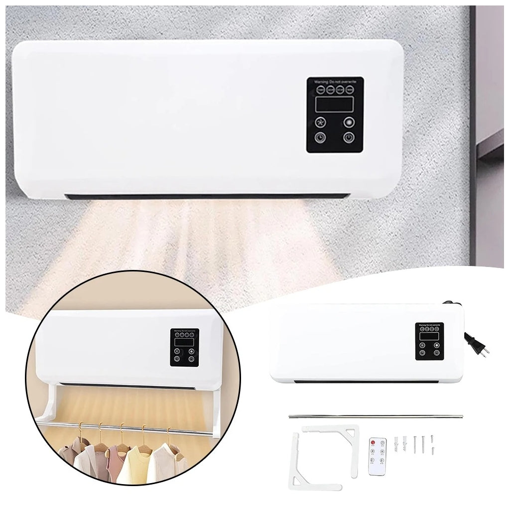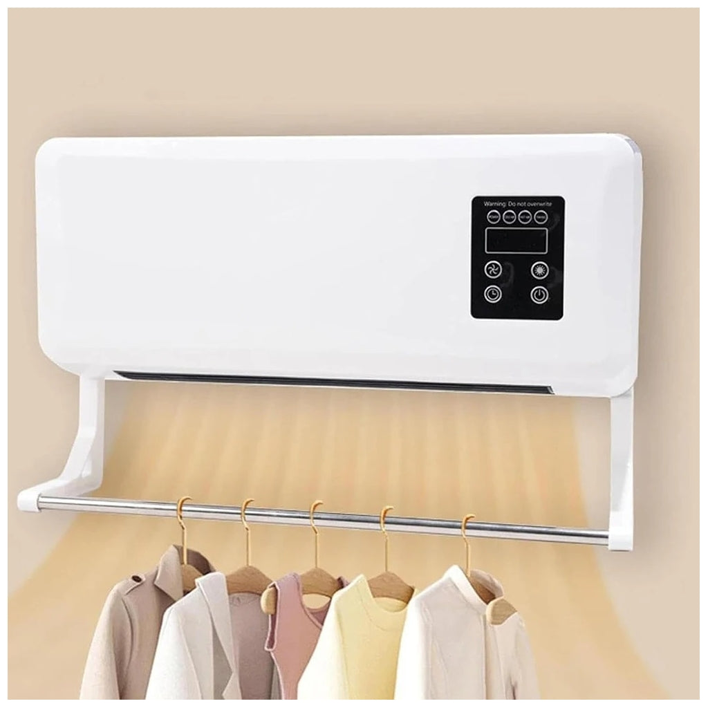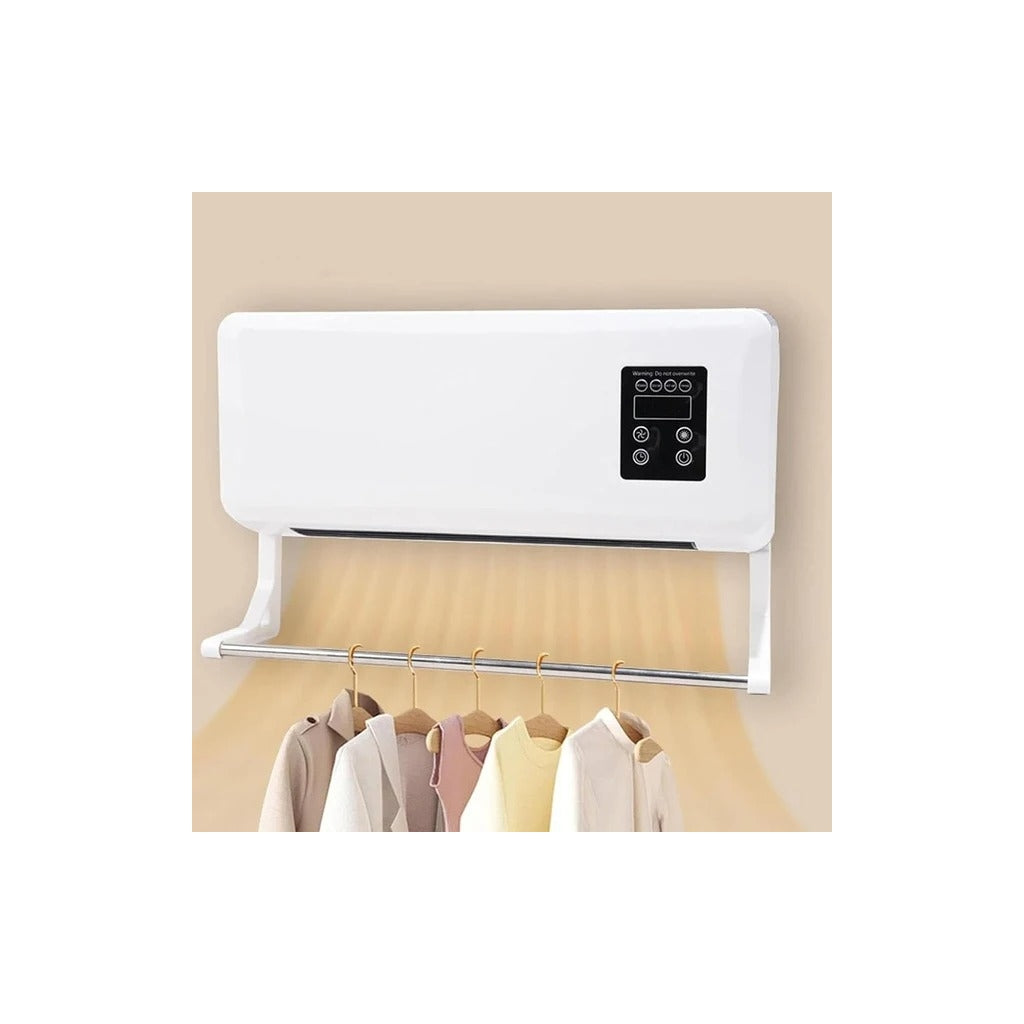 Aquecedor Elétrico de Parede com Suporte para Roupa e Controlo RemotoPerfeito para aquecer o ambiente e secar roupas, este aquecedor elétrico de parede combina funcionalidade e design moderno. Equipado com um suporte para pendurar roupa, é ideal para dias frios e chuvosos, oferecendo aquecimento eficiente e secagem prática.CaracterísticasDesign Multifuncional: Aquecedor e suporte para roupa num único equipamento.Controlo Remoto: Ajuste facilmente a temperatura e as funções sem sair do lugar.Painel de Controlo Digital: Permite configurar modos e temporizador com facilidade.Calor Eficiente: Distribui o calor uniformemente, aquecendo espaços rapidamente.Fácil Instalação: Inclui todos os acessórios necessários para montagem na parede.Material Resistente: Feito com materiais de alta qualidade para maior durabilidade.
