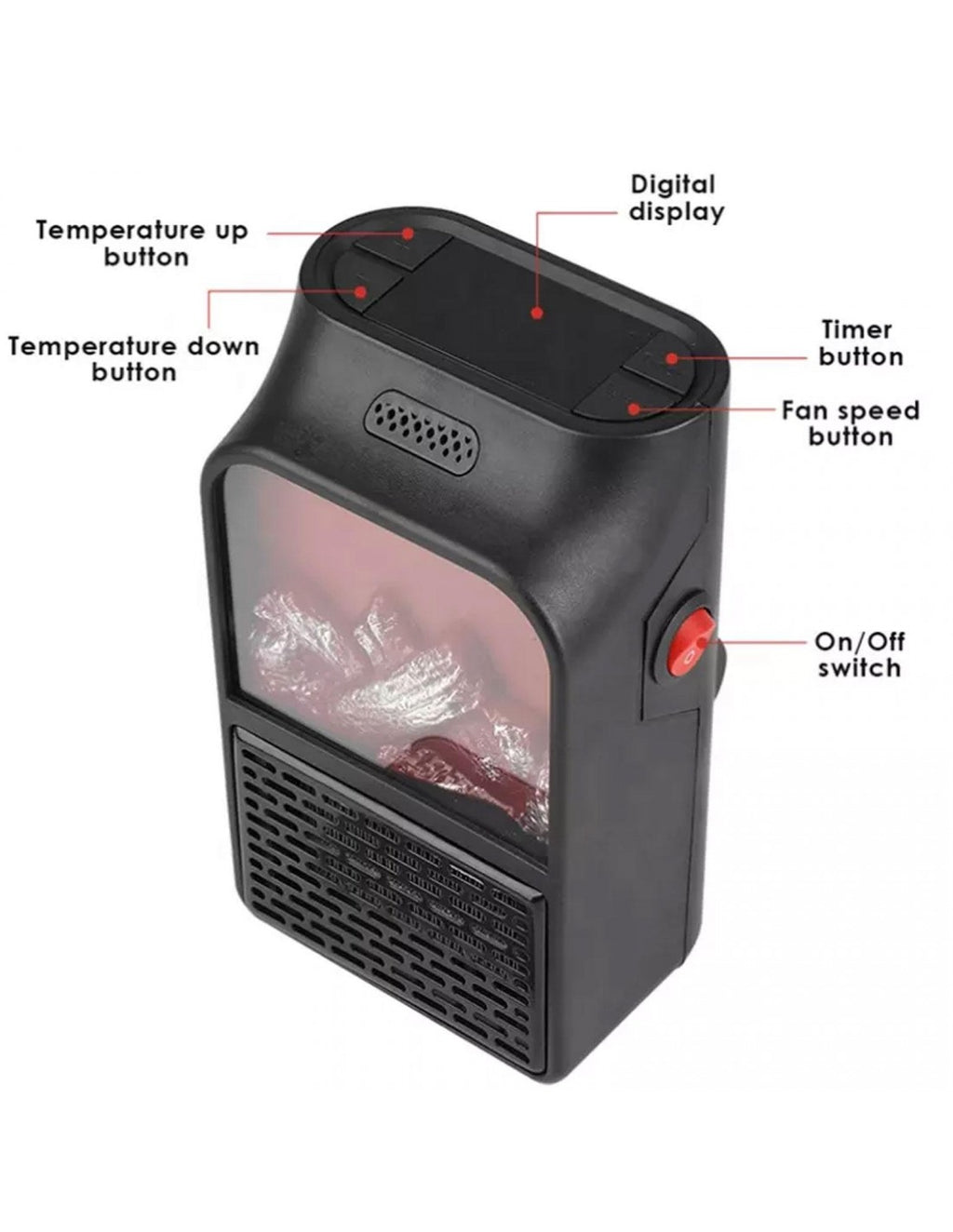 Aquecedor Portátil Elétrico com Efeito LareiraProporcione um ambiente aconchegante com o Aquecedor Portátil Elétrico que simula o efeito de uma lareira. Ideal para os dias frios, combina aquecimento eficiente e design moderno.Características principais:Efeito lareira realista:Cria uma atmosfera acolhedora e sofisticada.Tamanho compacto:Fácil de transportar e instalar em qualquer divisão da casa.Sistema de aquecimento rápido:Atinge a temperatura desejada em poucos minutos.Baixo consumo de energia:Economize sem abrir mão do conforto.Proteção contra sobreaquecimento:Segurança garantida para uso prolongado.Especificações técnicas:Potência: 500W.Voltagem: 220-240V.Dimensões: 18 x 12 x 8 cm.Peso: 700 g.Material: Plástico ABS resistente ao calor.Temperatura ajustável: Sim.