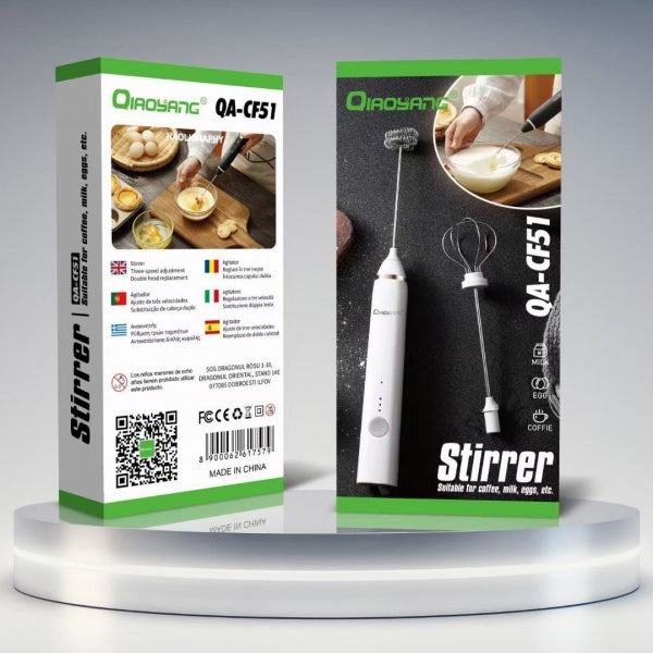 Batedor Elétrico Multifuncional QA-CF51 – Praticidade e Versatilidade na CozinhaPrepare deliciosas receitas com o Batedor Elétrico QA-CF51, um utensílio indispensável para bater, misturar e espumar rapidamente. Com design moderno e leve, facilita tarefas como preparar café, bater ovos ou misturar massas leves.Características Principais:Três Velocidades Ajustáveis:Adapte a potência às suas necessidades, seja para espumar leite ou misturar ingredientes mais densos.Duas Cabeças Substituíveis:Inclui um batedor de arame para misturas e uma vara espumadora para criar espumas perfeitas.Ergonómico e Leve:Facilita o manuseio, mesmo em uso prolongado.Fácil de Limpar:Componentes removíveis que simplificam a limpeza.Benefícios:Ideal para preparar cappuccinos, lattes, omeletes, sobremesas e muito mais.Economiza tempo, garantindo resultados profissionais em poucos segundos.Design portátil, perfeito para uso em casa ou em viagens.Especificações Técnicas:Modelo:QA-CF51Material:Plástico ABS e aço inoxidávelVelocidades:3 níveis ajustáveisAlimentação:Recarregável via USBDimensões:Compactas, ideal para armazenamento fácil