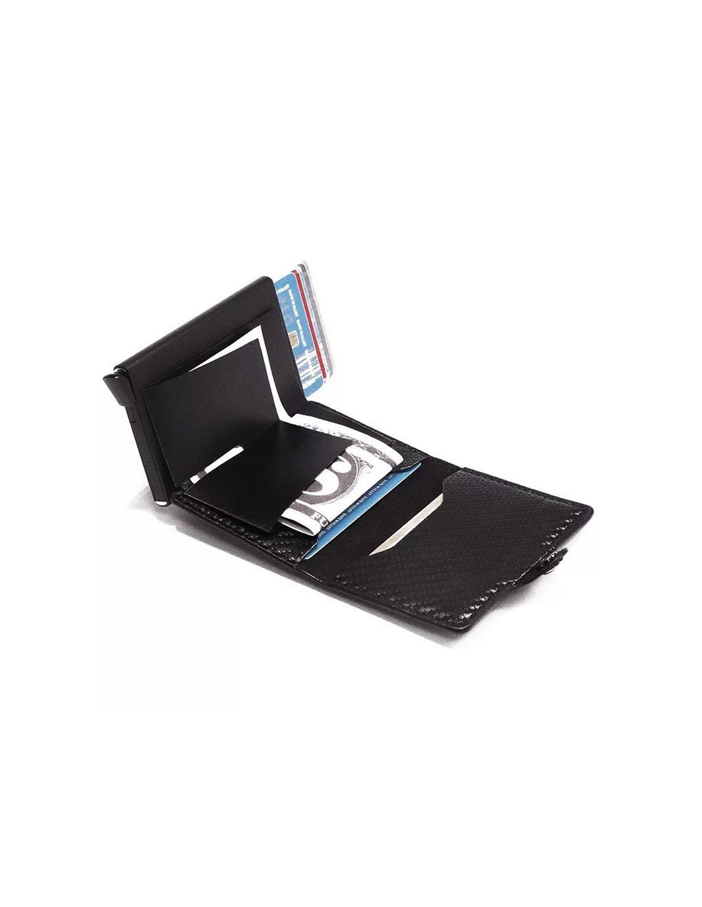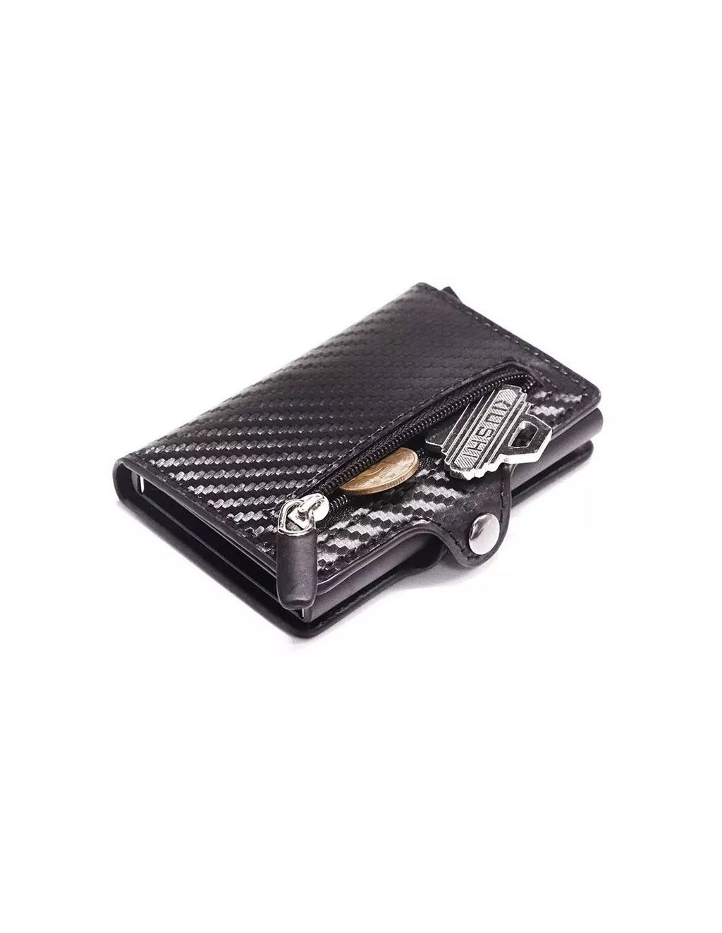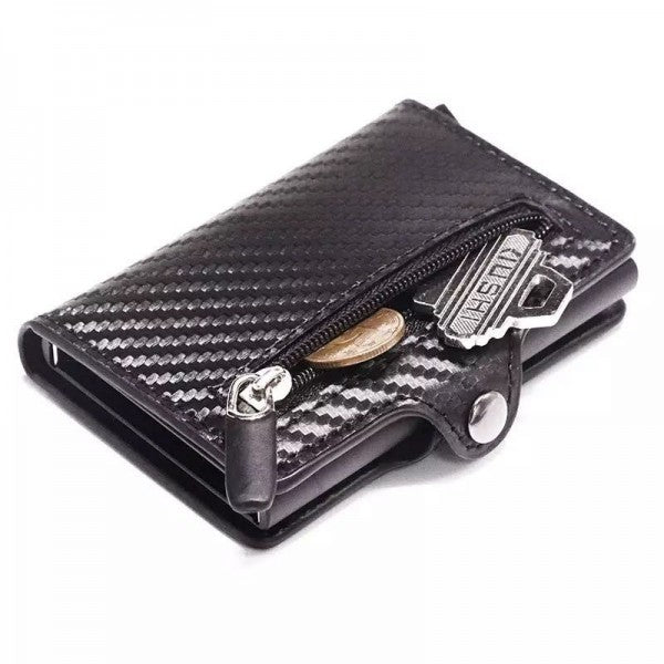 Carteira Minimalista em Fibra de Carbono – Estilo e FuncionalidadeEleve o seu dia-a-dia com esta carteira minimalista em fibra de carbono, combinando design elegante com máxima funcionalidade. Ideal para quem valoriza segurança e praticidade no transporte de cartões, moedas e chaves.Características Principais:Material de Alta Qualidade:Fabricada em fibra de carbono, leve, resistente e duradoura.Compartimento para Cartões:Capacidade para até 10 cartões, com sistema de fácil acesso.Bolso com Fecho:Espaço dedicado para guardar moedas e pequenos objetos.Suporte para Chaves:Mantenha as suas chaves organizadas e sempre à mão.Proteção RFID:Evita a clonagem de cartões e garante segurança adicional.Design Compacto:Perfeita para bolsos, mantendo um visual moderno e discreto.Especificações Técnicas:Material: Fibra de carbono e couro sintéticoDimensões: 10 x 6,5 x 2 cmPeso: 80 gCor: Preto carbono